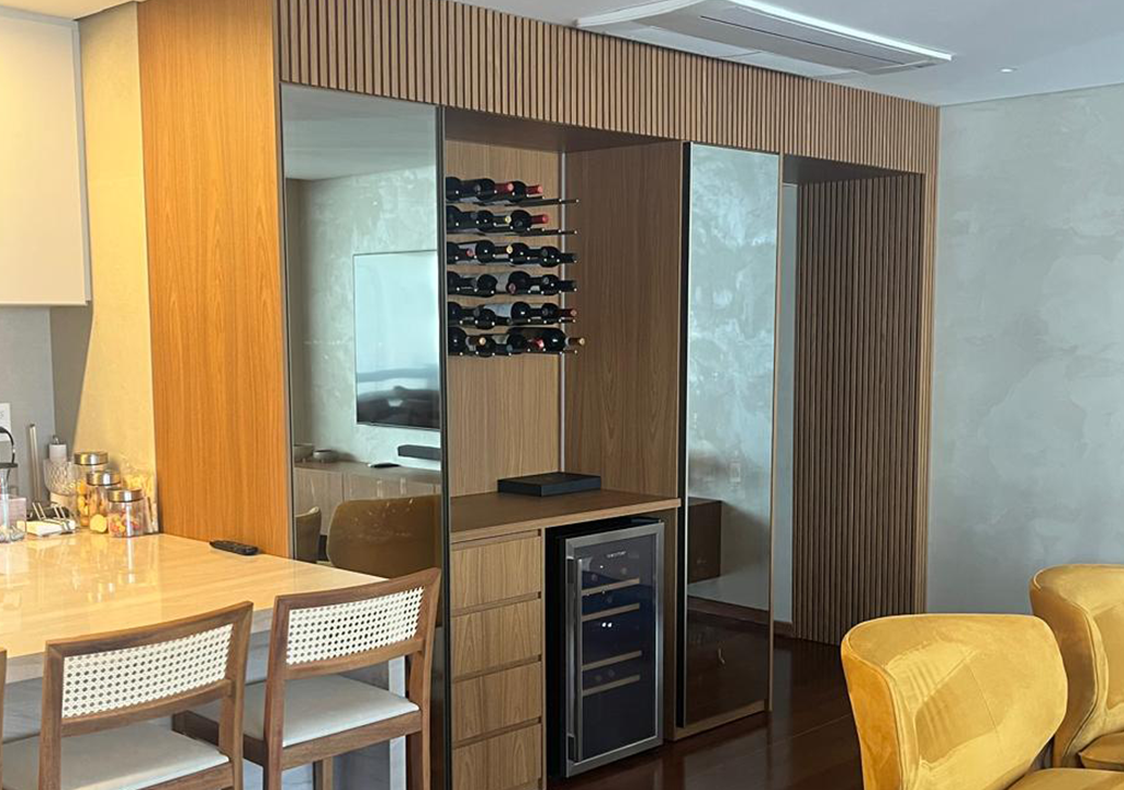 Adega Planejada com Painel Ripado e Espelhos Integrados